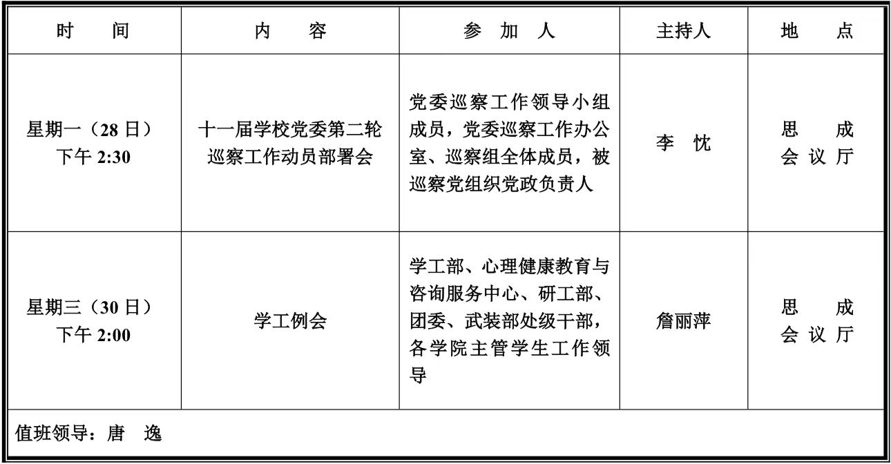 第十周学校活动安排