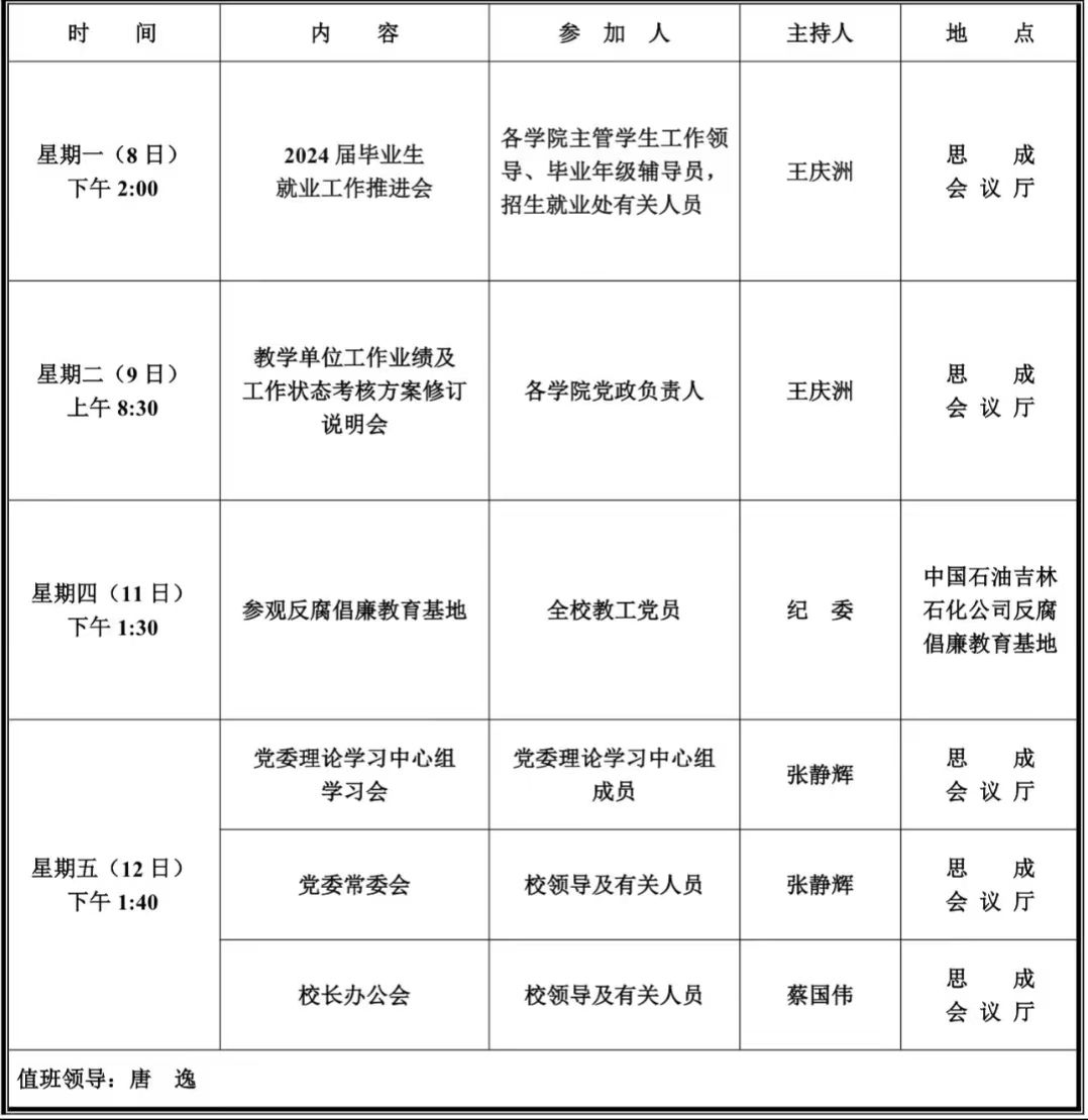 第十九周学校活动安排