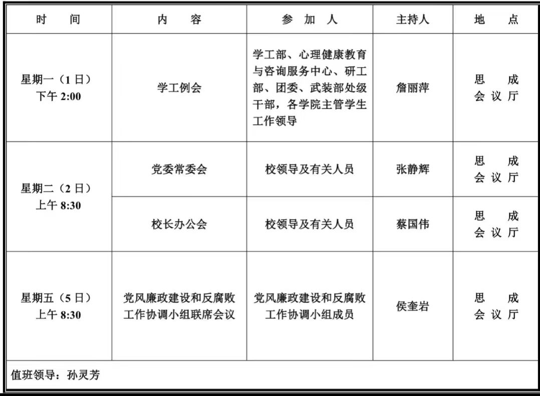第十八周学校活动安排