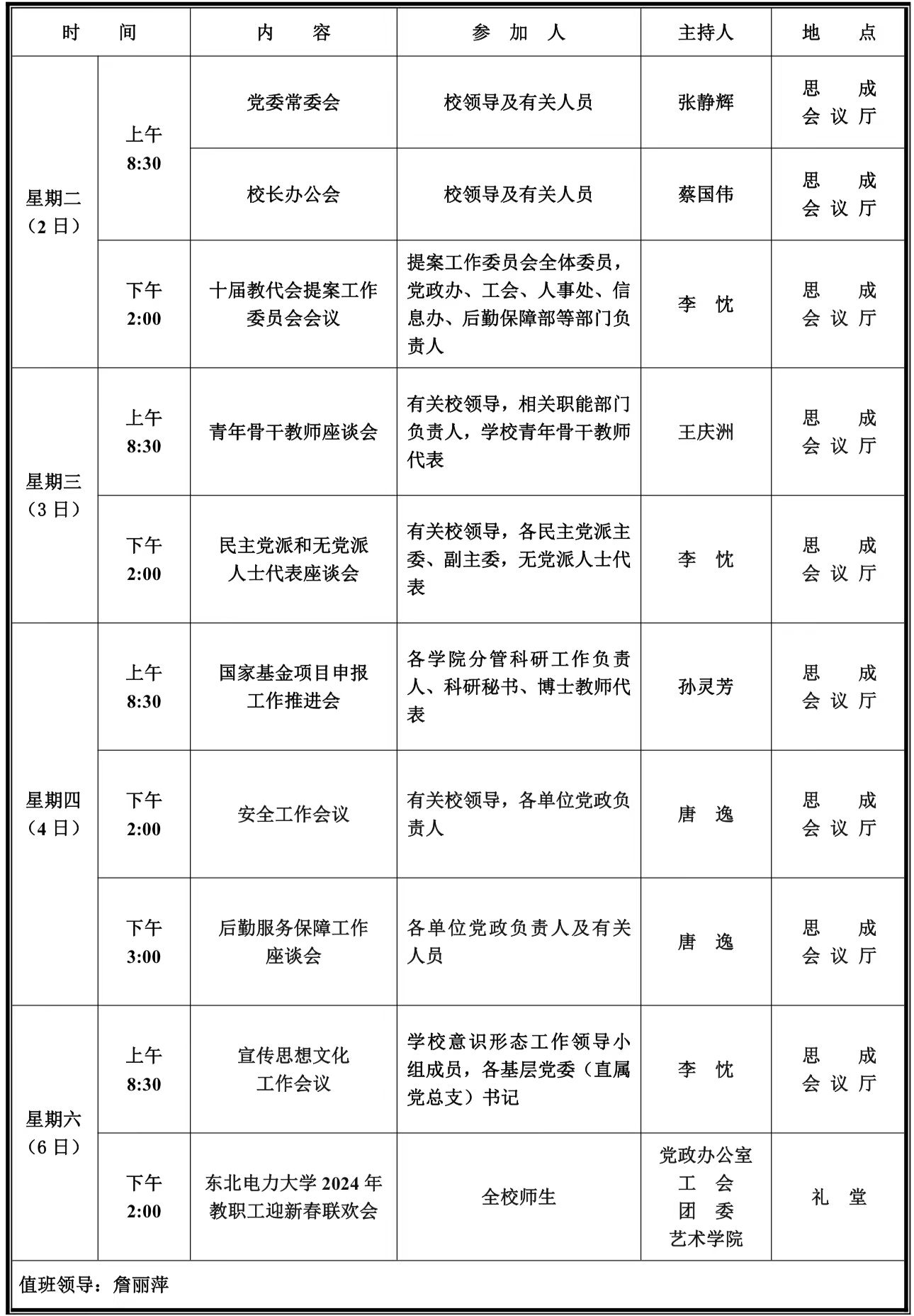 第十三周学校活动安排