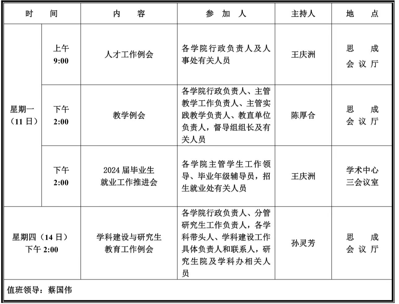 第二周学校活动安排