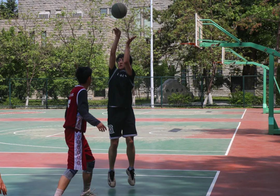教师篮球队与学生篮球队,在二教前篮球场举办了一场别开生面的师生联谊篮球赛。