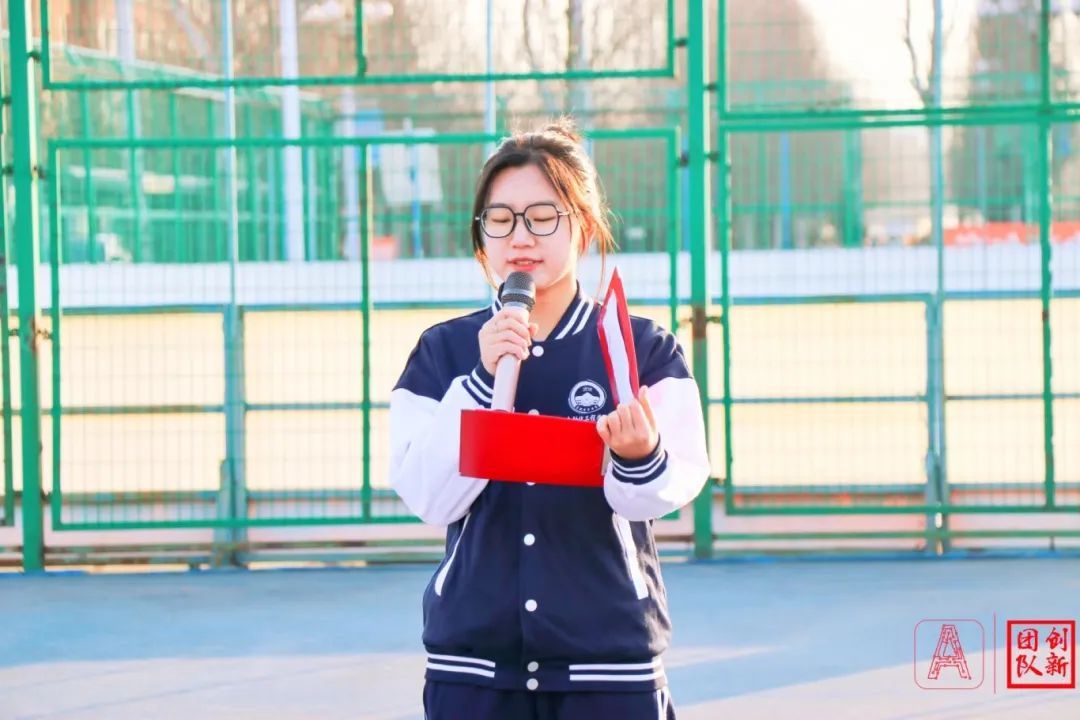 升旗完毕,由自动223班团支书、团委组织部部长刘佳钰寄语2023级新生。“未来属于青年,希望寄予青年。”她勉励同学们要不断牢记并践行“俯首甘为孺子牛”的精神,在新时代的舞台上奋力追逐人生理想,以有作为有担当的姿态,为实现中华民族伟大复兴而团结奋斗,做有理想、敢担当、能吃苦、肯奋斗的新时代青年。