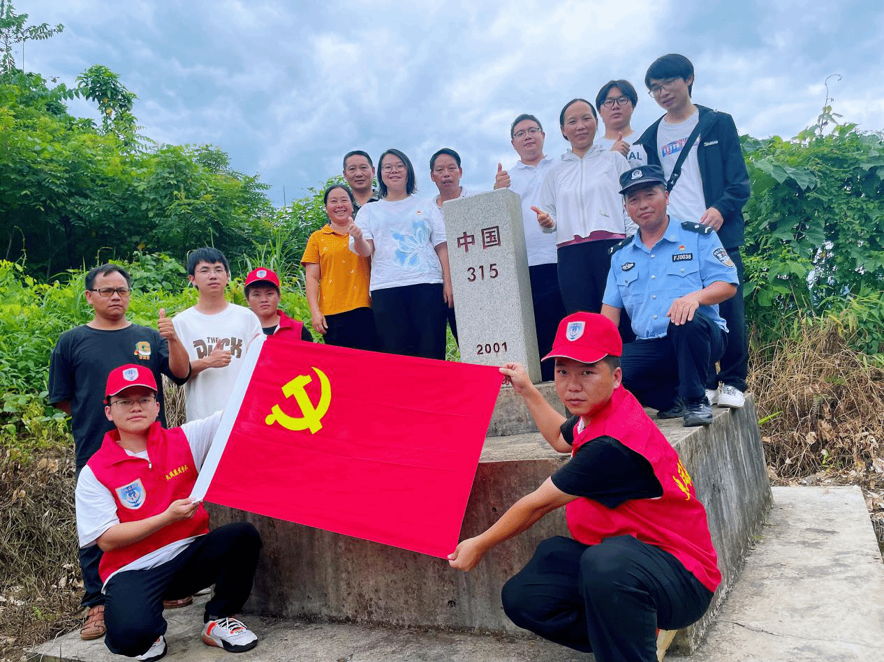 党员们顶着炎炎烈日,沿着中越边境线与当地联防所民警一起开展巡边活动,重走戍边路,亲身体验戍边的艰苦环境,感悟戍边人员的坚韧与担当。行走在边境小路上,汗水浸湿了衣背,大家切身感受到了戍边守边的艰辛,领悟到肩上沉甸甸的责任。党员们认真听取生活在边境的老党员们讲解历史的变迁,重温峥嵘岁月,追寻红色印记,缅怀革命先辈,深刻感受祖国的巨大变化,今天幸福生活来之不易,更深入、更直观地了解守护国家安全的重要性。