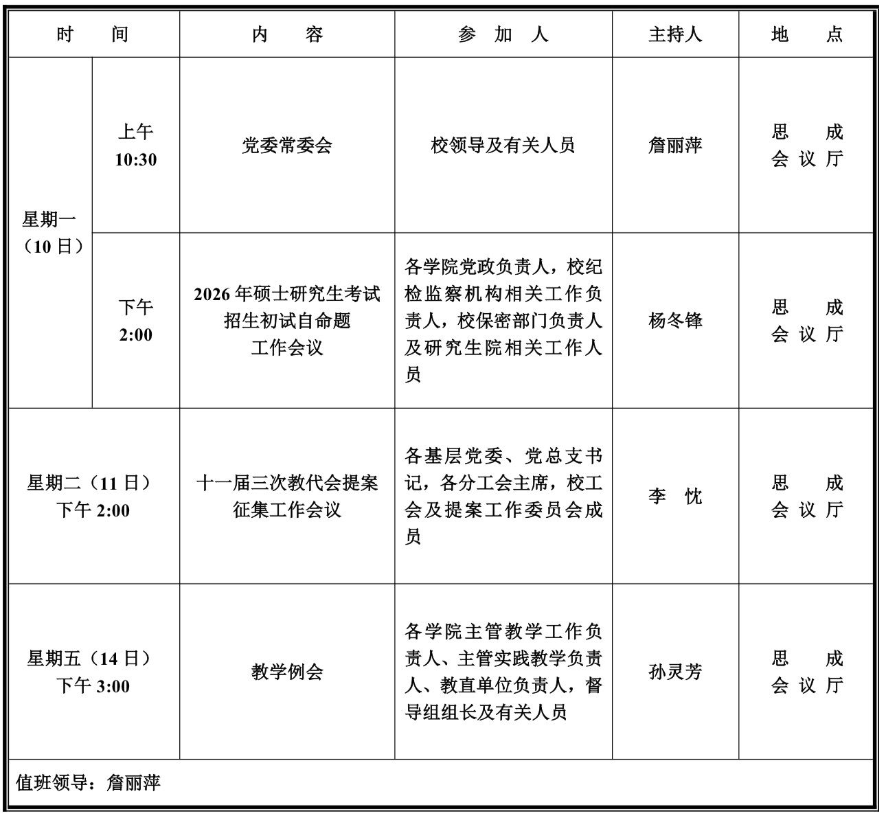 第十二周学校活动安排