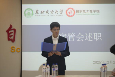 为进一步贯彻学生组织服务宗旨,强化学生代表监督作用,自动化工程学院于2025年12月29日在主教430召开2025年度学生组织主席团述职评议大会。自动化工程学院党委书记马崇升、副院长王迪、团委书记田家伊老师、各年级辅导员及学院学生代表出席会议。