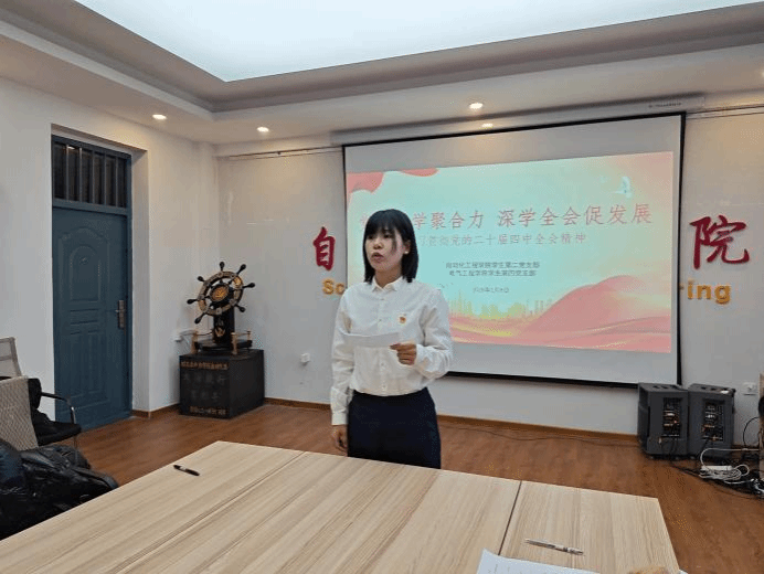 自动化工程学院贾帅宇同学从科技创新角度解读,分享党的二十届四中全会高度重视高水平科技自立自强,强调提升国家创新体系整体效能。电气工程学院金楷尧同学从乡村振兴角度解读,全会将加快农业农村现代化、扎实推进乡村全面振兴置于关键位置。自动化工程学院赵思扬同学从绿色发展角度解读,全会强调加快经济社会发展全面绿色转型,这是应对全球环境挑战、塑造国际竞争新优势的战略之举。电气工程学院浦迅齐同学从对外开放角度解读分享,全会从多方面对“十五五”时期对外开放工作作出部署。