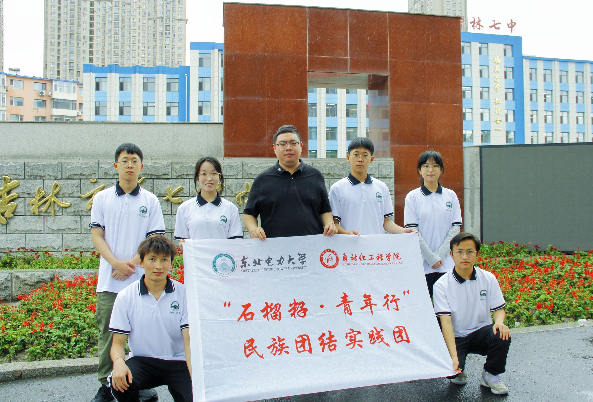 党委组织“石榴籽·青年行”民族团结实践团成员,由学生第一党支部书记王玮带领,赴吉林市第七中学校开展铸牢中华民族共同体意识研学实践参观活动。